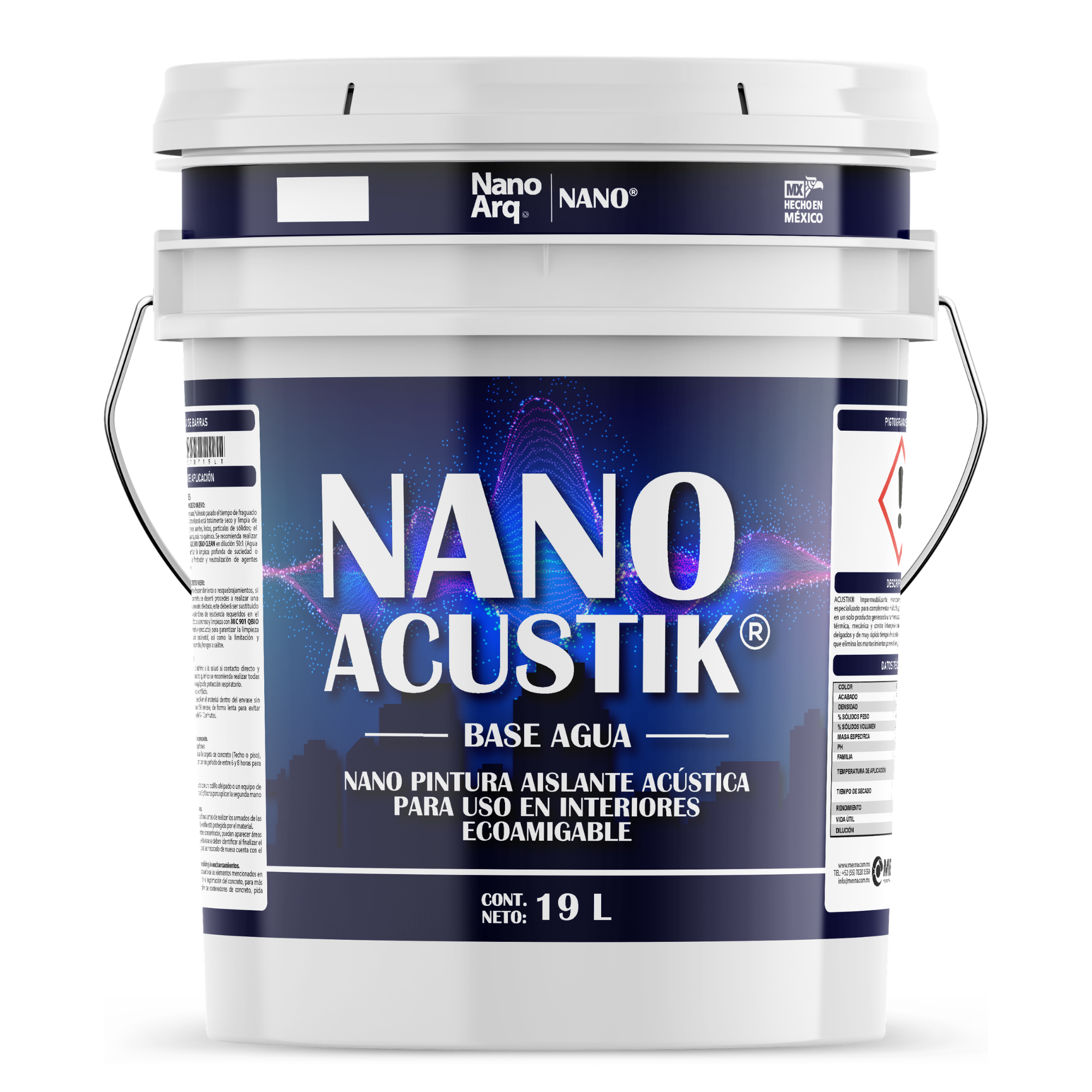 NANO ACUSTIK® es una pintura nanotecnológica viscoelástica de alta densidad, diseñada para reducir significativamente el ruido, la reverberación y el eco en espacios interiores, sin necesidad de sistemas tradicionales voluminosos.