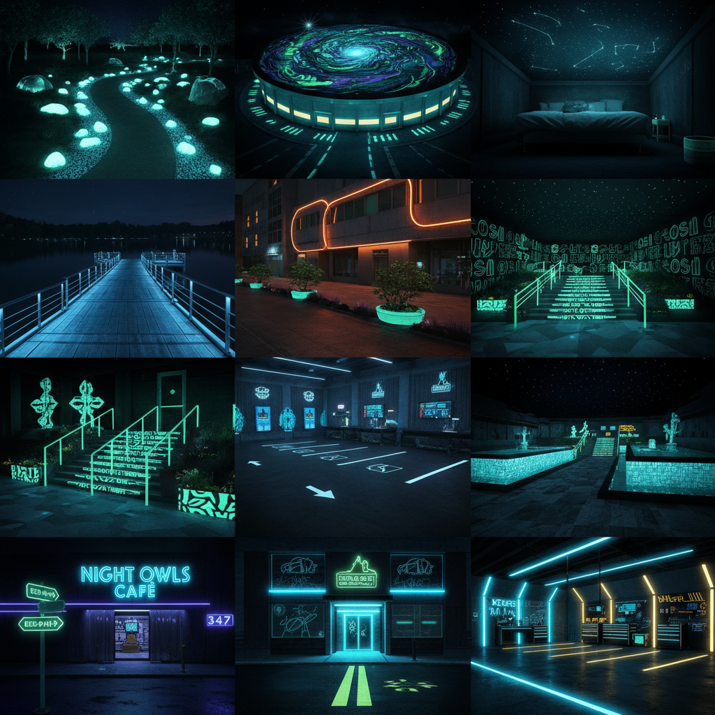 – Elementos artísticos en interiores o exteriores con efecto nocturno